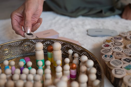 Door poppetjes en voorwerpen op een bepaalde manier op tafel neer te zetten en daar samen naar te kijken kunnen we achterhalen waarom er op een bepaalde manier iets gedaan wordt binnen een systeem. Of waarom je zo reageert. Of misschien komt er een verstrikking of geheim aan de oppervlakte.